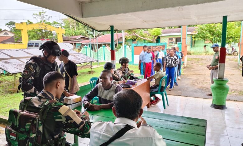 Mindiptana – Upaya meningkatkan kualitas kesehatan dan kesejahteraan masyarakat di wilayah perbatasan terus dilakukan Satuan Tugas Pengamanan Perbatasan (Satgas Pamtas) RI-PNG Yonif 126/Kala Cakti dengan menggelar kegiatan bakti kesehatan bagi warga Kampung Mindiptana, Distrik Mindiptana, Kabupaten Boven Digoel, Papua Selatan, pada Selasa (25/6/2025).