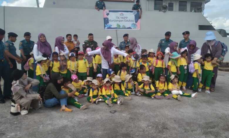 Bintan || Koranprogresif.id, Prajurit Lanal Bintan memberikan edukasi kepada Siswa/Siswi TK YKPP (Yayasan Kesejahteraan Pendidikan dan Perumahan) Tanjung Uban untuk mengajak dan melihat dari dekat Kapal Perang Republik Indonesia (KRI) Alamang-644 yang masuk jajaran Satkat Koarmada I, bertempat di Dermaga Pangkalan TNI Angkatan Laut Bintan, Tanjung Uban, Jum’at (22/11/2024).