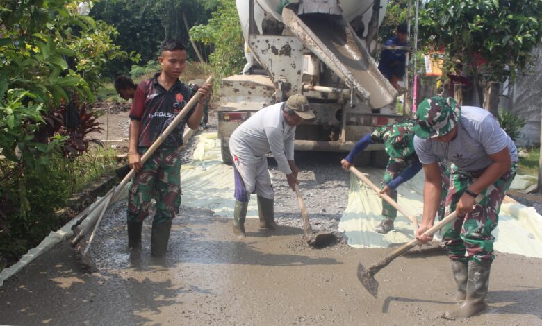 TMMD 123, Kodim Dan Warga Tetap Mengecor Jalan di Bulan Puasa