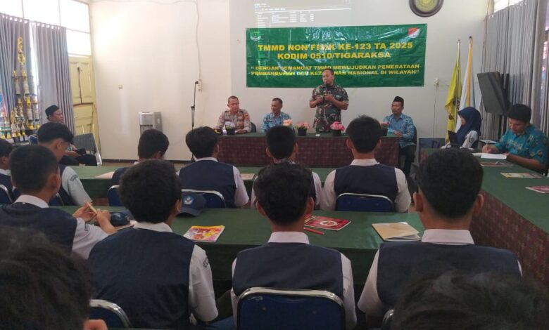 Tigaraksa || Koranprogresif.id, Program TNI Manunggal Membangun Desa (TMMD) ke-123 tidak hanya fokus pada pembangunan infrastruktur, tetapi juga penguatan karakter generasi muda. TMMD 123 menggelar penyuluhan di SMPN 2 Tigaraksa, Kabupaten Tangerang, yang diikuti 40 siswa, Kamis (06/03/2025).