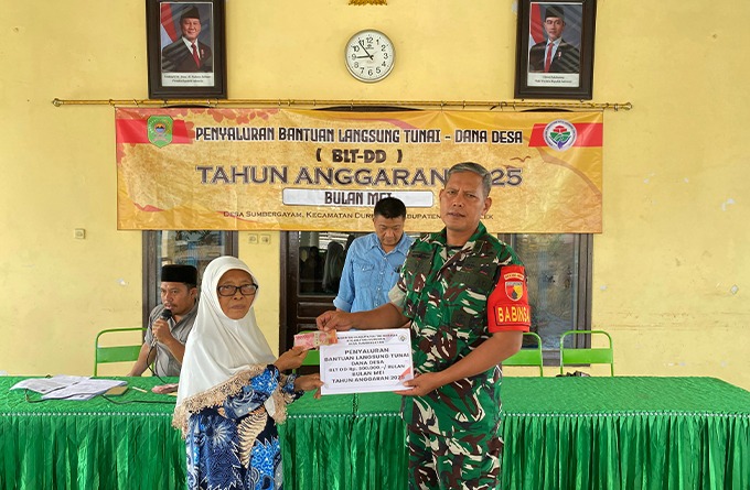 Seperti yang dilakukan oleh Babinsa Sumbergayam, Pelda Sunarman, anggota Koramil 0806-03/Durenan, yang turun langsung mendampingi proses penyaluran BLT-DD kepada warga Desa binaannya di Balai Desa Sumbergayam, Kecamatan Durenan, Kabupaten Trenggalek, Kamis (29/5/2025).