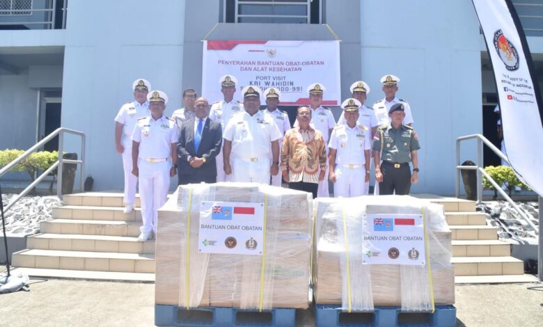 JAKARTA || Koranprogresif.id – Usai melaksanakan kunjungan kehormatan kepada Kedutaan Besar (Dubes) RI untuk Fiji, TNI AL dalam hal ini Kepala Staf (Kas) Koarmada III, Laksamana Pertama TNI Singgih Sugiarto, S.T., M.Si. mendampingi Dubes RI untuk Fiji, Dupito D. Simamora menyerahkan bantuan kesehatan berupa obat-obatan dari Pemerintah RI untuk Negara Fiji yang diwakili oleh Fiji Navy Commander of Fiji Navy Commodre Humphery Tawake bersama dengan Direktur Biro Asia Kemlu Fiji, Mr. Josefa Tuima bertempat di Fiji Naval Base Royal Fiji Navy Stanley Brown Naval Base, Senin (04/11).