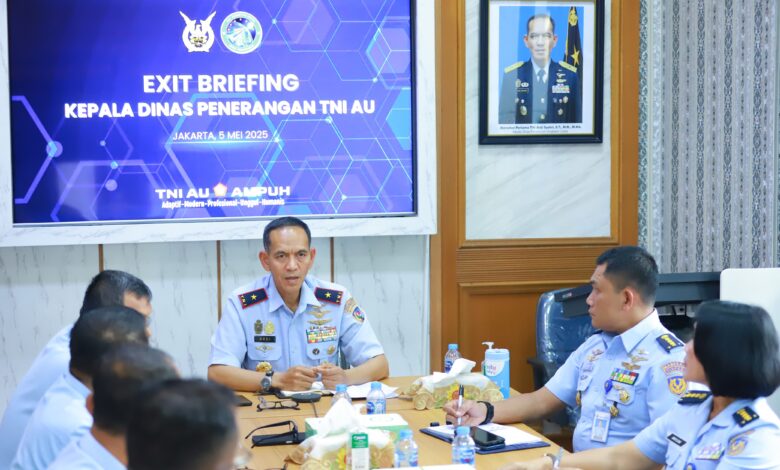 Cilangkap || Koranprogresif.id, Menjelang akhir masa jabatannya, Kepala Dinas Penerangan TNI Angkatan Udara (Kadispenau) Marsekal Pertama TNI Ardi Syahri, S.T., M.M., M.M.A. memberikan pengarahan terakhir kepada seluruh personel Dispenau dalam kegiatan exit briefing yang digelar di Ruang Rapat Kantor Dispenau, Senin (5/5/2025). Kegiatan ini menjadi momen penting untuk menyampaikan refleksi, apresiasi, dan arahan strategis demi kesinambungan kinerja penerangan TNI AU yang semakin solid dan terarah.