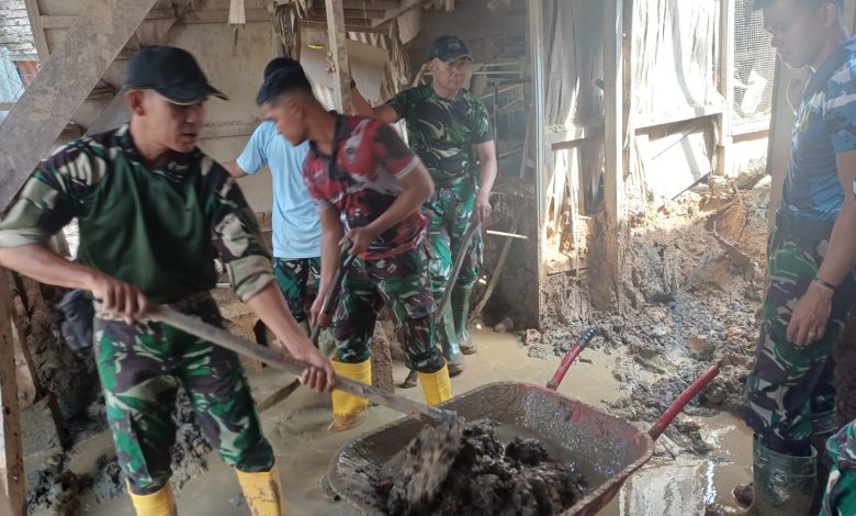 Sejumlah personel Lanud diterjunkan untuk membersihkan rumah-rumah warga, jalan umum, serta fasilitas lingkungan lainnya yang terdampak banjir. Kegiatan dilaksanakan secara terkoordinasi dan terpadu agar kawasan permukiman kembali bersih dan layak digunakan.