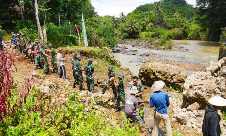 TNI Bangun Jembatan Gantung 80 Meter Untuk Percepat Mobilitas Warga Sukabumi