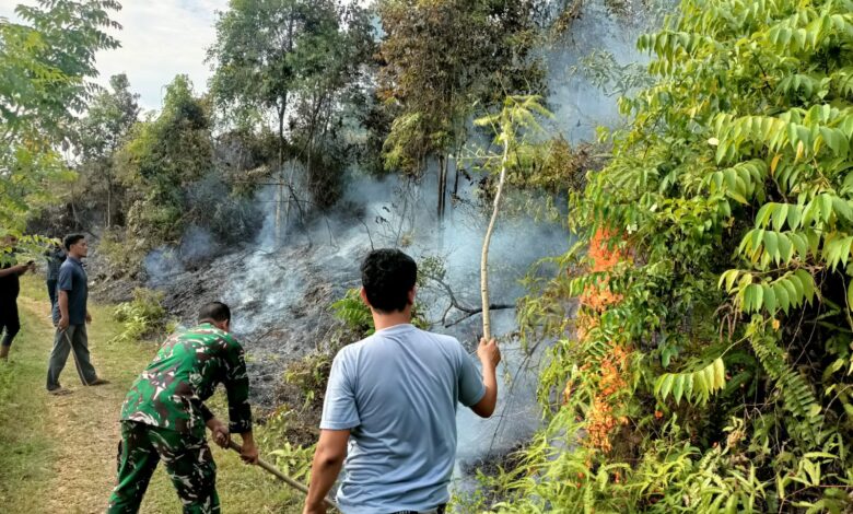 TNI dan Warga Berjibaku Padamkan Kebakaran Lahan di Gunung Cut Abdya