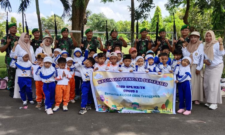 TRENGGALEK || Koranprogresif.id – TNI melalui satuan teritorialnya kembali memperlihatkan wajah humanis dalam membangun karakter bangsa sejak usia dini. Di Kabupaten Trenggalek, prajurit Kodim 0806 menjadi ikon baru dalam kegiatan pendidikan nonformal bagi anak-anak sekolah.
