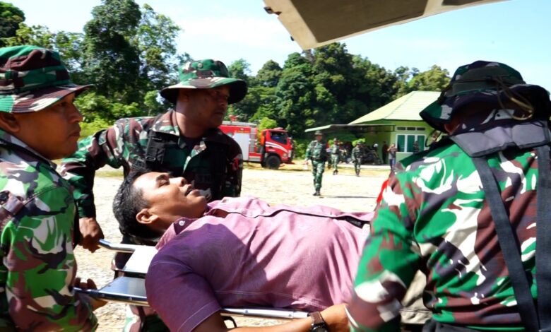 Latihan gabungan ini menitik beratkan pada aspek sinergi lintas sektor dengan melibatkan unsur BPBK, Tenaga Medis, perangkat Desa, Babinsa, Bhabinkamtibmas, dan masyarakat setempat.