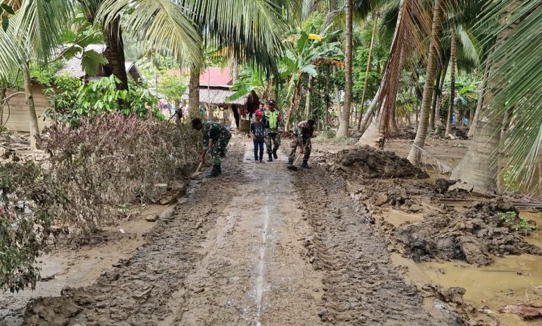 Aceh – TNI Melalui Kodam Iskandar Muda mengerahkan alat berat untuk mempercepat penanganan pascabanjir dan longsor di Desa Kuala Ceurape, Kecamatan Jangka, Kabupaten Bireuen. Babinsa Koramil 07/Jangka bersama unsur TNI dan pemerintah daerah melaksanakan pembersihan material lumpur yang menutup akses utama desa, Selasa (9/12/2025).