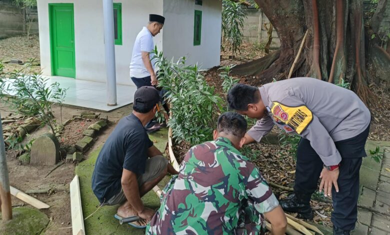 TNI, Polri, dan Warga Kompak Kerja Bakti di TPU Buyut Mester