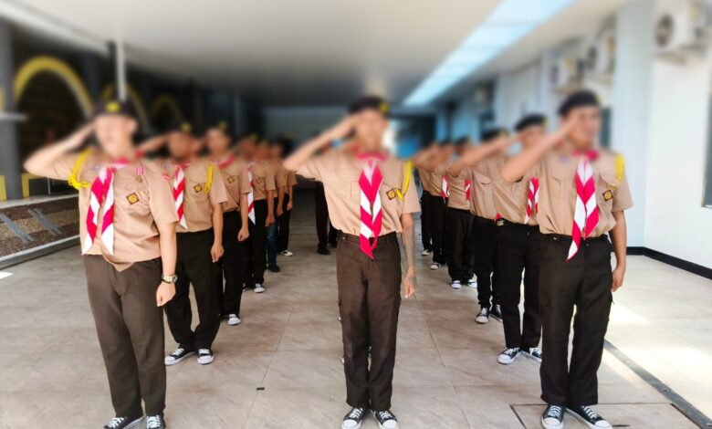 Kegiatan ini berlangsung dengan semangat, terlihat dari barisan pramuka yang mengikuti setiap instruksi dengan penuh perhatian.