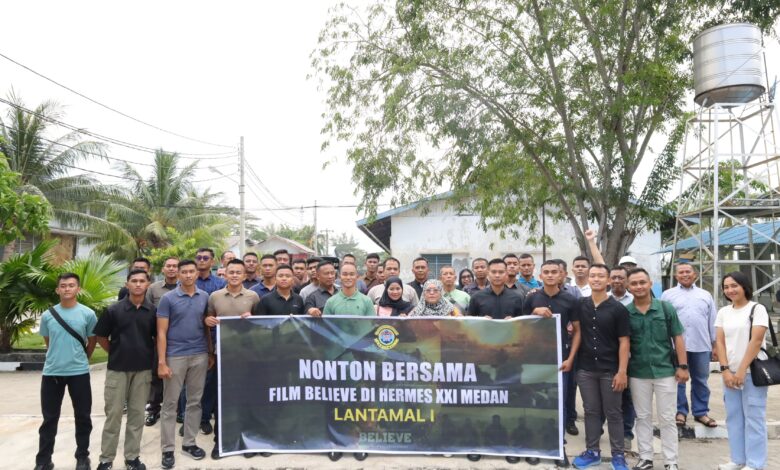 Belawan,- Pangkalan Utama TNI Angkatan Laut I (Lantamal I) melaksanakan kegiatan nonton bareng (Nobar) Film “Belive : Takdir, Mimpi dan Keberanian, bertempat di Hermes XXI Bioskop, Jalan Polonia, Kecamatan Medan Polonia, Kota Medan, Sumatera Utara, Senin (14/07/2025).