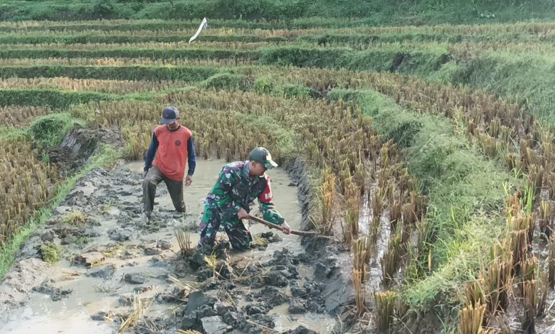 Turut Mencangkul di Sawah, Upaya Babinsa Kodim Ponorogo Sejahterakan Petani