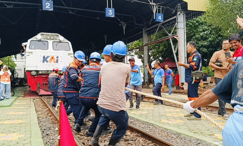 Unik, KAI Daop 3 Cirebon Gelar Lomba Tarik Lokomotif di HUT ke-80