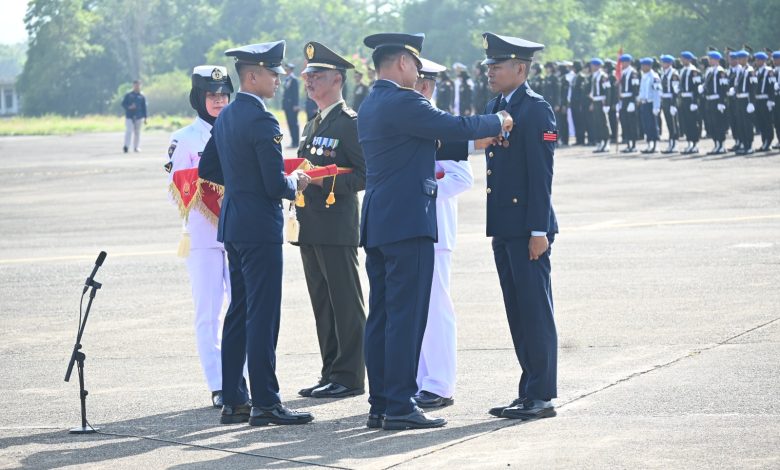 Makassar – Komandan Lanud Sultan Hasanuddin Marsekal Pertama TNI Arifaini Nur Dwiyanto, M.Han didampingi Ketua PIA AG Cab.7/D.II Lanud Sultan Hasanuddin Ny. Betty Arifaini Nur Dwiyanto, menghadiri Upacara Peringatan HUT Ke-80 Tentara Nasional Indonesia di Apron Base Ops Lanud Sultan Hasanuddin, Makassar, Minggu (5/10/2025).