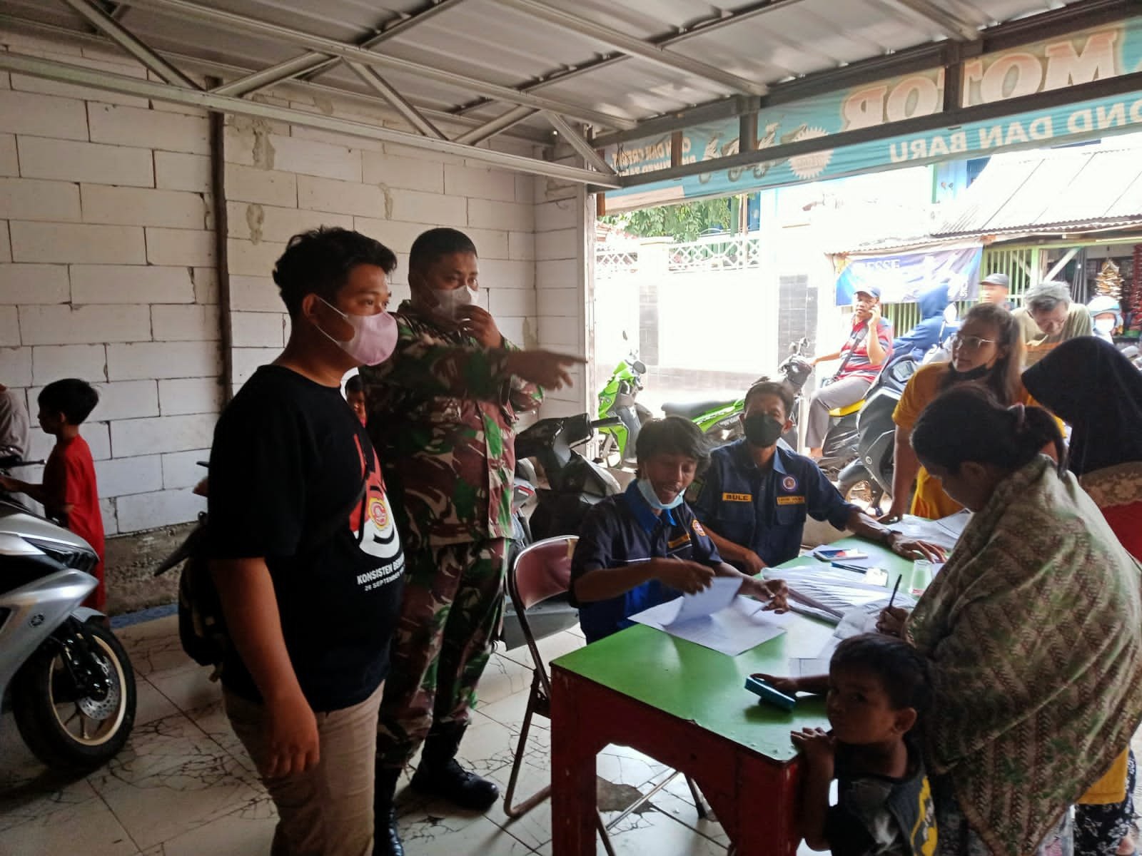 Bekasi – koranprogresif.co.id – Babinsa Cikarang Kota, Serka Arifin melaksanakan pendampingan vaksinasi dosis 1 yang di selenggarakan di Kp. Bumi Asih RT 01/06 desa Cikarang Kota sebanyak 55 orang Dosis 1 Jenis vaksin sinovac, Minggu (10/10).