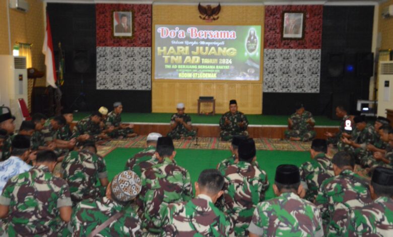 DEMAK || Koranprogresif.id – Anggota Kodim 0716/Demak baik TNI dan PNS melaksanakan Do’a bersama dalam rangka Hari Juang TNI AD ke-79 tahun 2024 yang bertemakan “TNI Angkatan Darat Berjuang Bersama Rakyat”, di Aula Makodim 0716/Demak, Jln Kyai Singkil No.01 Bintoro Demak Jawa Tengah, Jum’at (13/12/2024).