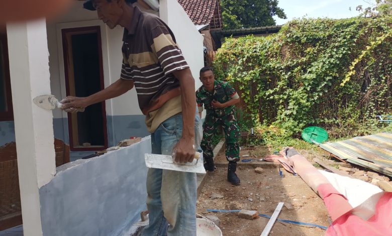 Warga Bangun Rumah, Babinsa Kodim Ponorogo Bantu Ngecat