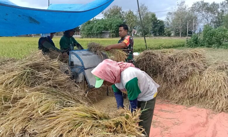Warga Panen, Anggota TNI Kodim Ponorogo Bantu dan Sosialisasi Sergab