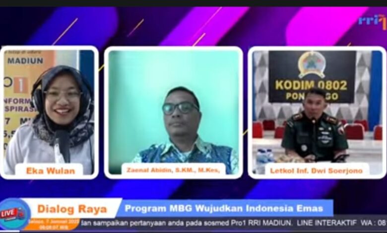 Wawancara Dandim Ponorogo bersama Presenter RRI Madiun, Eka Wulandari serta Zainal Abidin, S.A.M, Kes, melalui Video Converence tersebut, membahas perkembangan terkini terutama terkait Makan Bergizi Gratis (MBG) yang merupakan salah satu Program Pemerintah Republik Indonesia, guna mewujudkan Indonesia Emas.