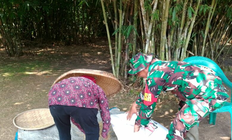Wujud Pendampingan Ke Petani Babinsa Koramil 14/Panongan Bantu Jemur Padi