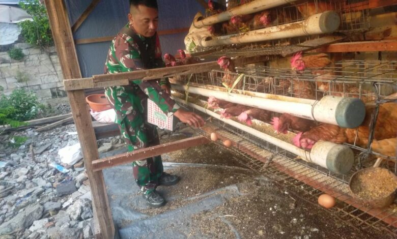 Wujudkan Ketahanan Pangan Skala Kecil, Babinsa Koramil 01/Ts Pantau Budidaya Ayam Petelur