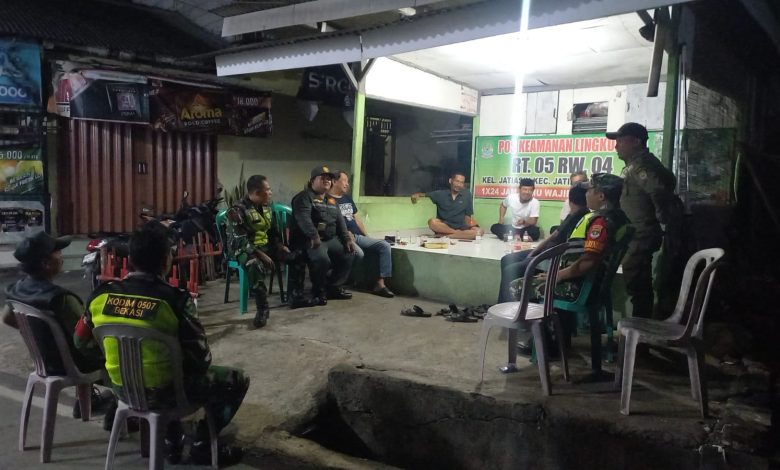 Kota Bekasi – Dalam rangka menjaga keamanan dan ketertiban masyarakat (Kamtibmas) di wilayah binaan, Babinsa Koramil 04/Jatiasih Kodim 0507/Bekasi bersama unsur Tiga Pilar (TNI, Polri, dan Pemerintah Daerah) serta Komponen Pendukung (Komduk) yang terdiri dari unsur masyarakat seperti ormas, karang taruna, linmas, dan warga, melaksanakan kegiatan patroli malam dan monitoring siskamling, pada Selasa malam (21/10/2025) pukul 21.00 WIB hingga selesai.