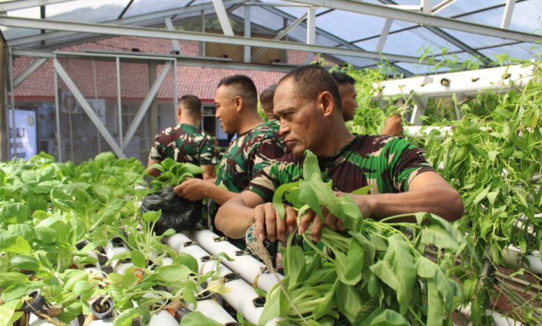 Setelah melalui proses pembibitan, penanaman, dan perawatan selama satu bulan, prajurit Yonko 464 berhasil memanen sayuran hidroponik berupa sawi dan kangkung, yang kemudian dibagikan kepada seluruh anggota, Senin (2/6/2025).